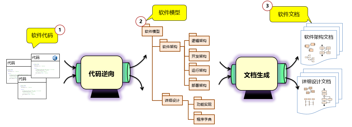 | 帮助客户基于现有软件代码逆向设计模型: |