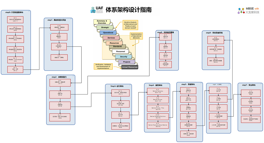 | 如下是UAF架构的逻辑开发过程。实际过程中,其中许多都是并行进行的,还存在迭代和回溯的工作流。