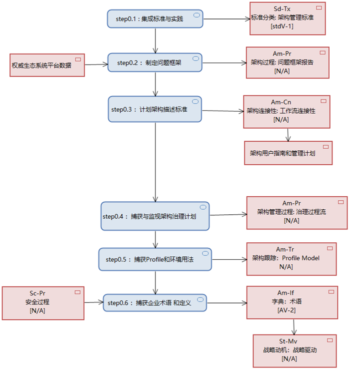 架构管理活动通常位于大量的体系架构设计活动之前。以规划和准备多个体系架构项目的工作流。步骤 0 的某些元素可以根据工作目的、范围和工作执行方式的的变化而修订。 |