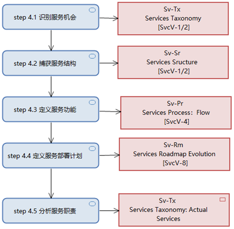 | 此步骤的工作是识别出需要的服务,并对服务进行设计以便支持实现能力的运行活动。 |