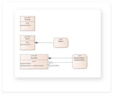 显示停靠在元素上(SysML 1.x 样式)或作为独立元素(SysML v2 样式)的端口。