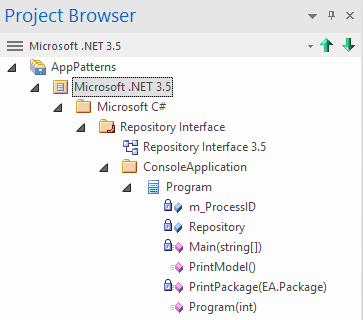 在“应用程序模式”选项卡上,选择“ Microsoft C #”>“ RepositoryInterface”模板。 (您可以从3.5或4.0框架版本中进行选择。)在文件系统上指定用于创建项目模板的目标文件夹,然后单击“确定”按钮。