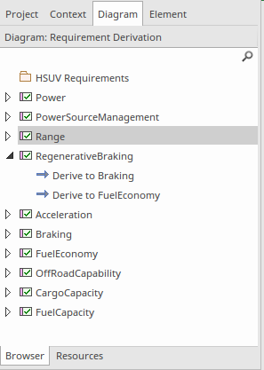 浏览器是中央导航工具,可用于构建和浏览存储库的内容,包括处理需求。浏览器具有许多选项卡,可用于以特定方式查看存储库的内容。我们已经在较早的主题中介绍了浏览器,但将谈论其与可视化需求的相关性。