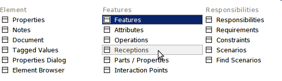 创建接收的最简单方法是单击图表中的块或在浏览器窗口中,然后选择功能区项“设计>元素>编辑器>接收”。