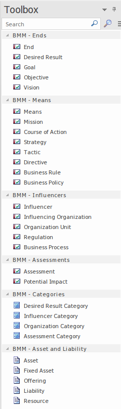 您可以使用MDG技术为业务动机模型在Enterprise Architect快速轻松地开发业务动机模型图。 BMM设施以以下形式提供: