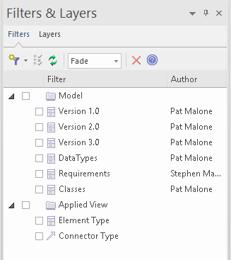 使用图过滤器(动态视觉过滤器),您可以修改图组件的显示,以便立即识别所需的项目,而不会损坏模型的结构和完整性。过滤器根据属性(例如作者,状态,创建日期或构造型值)对元素,连接器或标记值进行操作,对于连接器,连接器是隐藏的还是可见的。过滤器是针对模型存储的,因此您创建的过滤器可供模型的其他用户使用。但是,过滤器的使用特定于用户,因此您对过滤器的使用不会影响其他用户的图表视图。