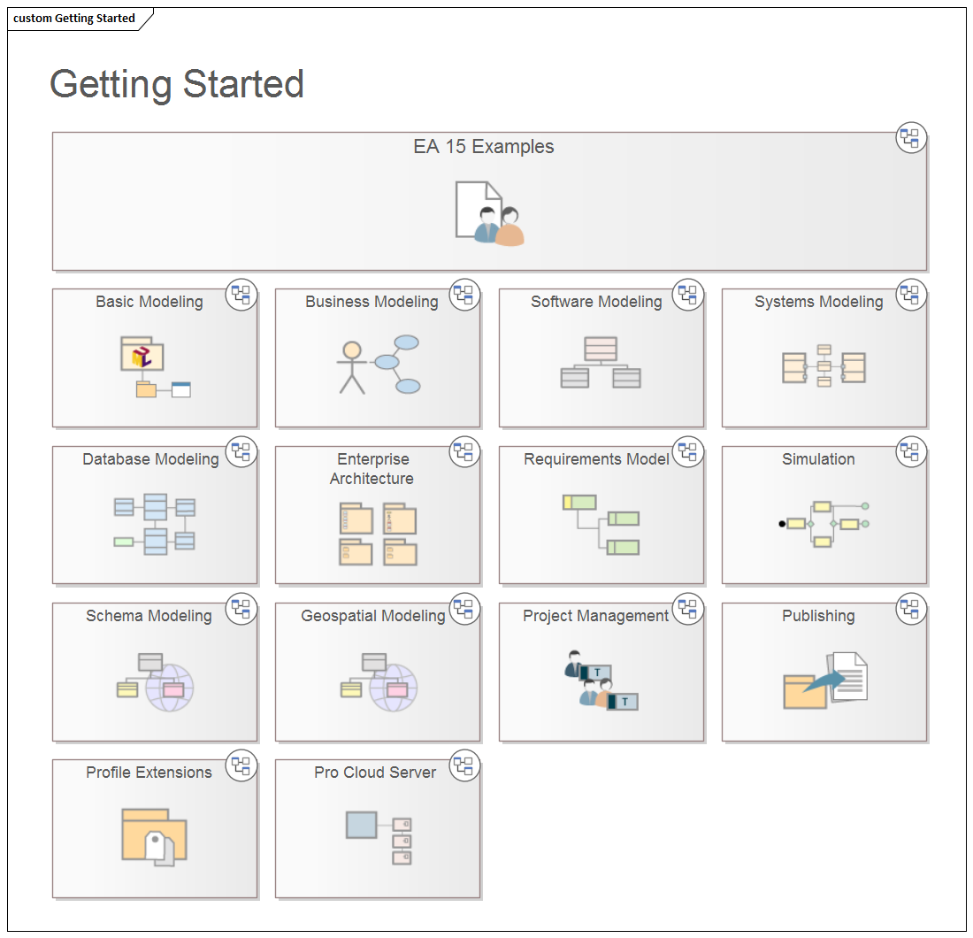 Enterprise Architect通过提供强大的图表机制以超链接到存储库中的任何其他图,使用户可以轻松浏览存储库。这是导航单元,可用于提供简单或更具装饰性的方向,并链接到对用户有意义的图表。您可以在图上添加几个导航单元以创建顶层主页,从而将用户定向到他们感兴趣或负责的模型区域。您可以将导航单元添加到图的层次结构中,从而进一步将用户引导到模型的越来越多的特定方面。一个很好的说明就是Enterprise Architect EAExample模型的“入门”图。