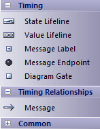 时序工具箱提供了用于创建时序图的建模元素,时序图定义了对象在时间范围内的行为,以可视化对象随时间变化的状态和交互方式。